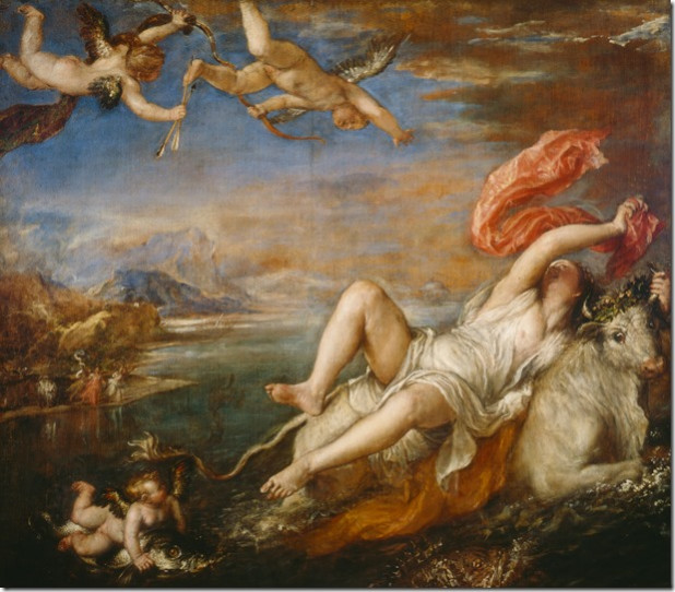 (2). Η αρπαγή της Ευρώπης, πίνακας του Τιτσιάνο.
