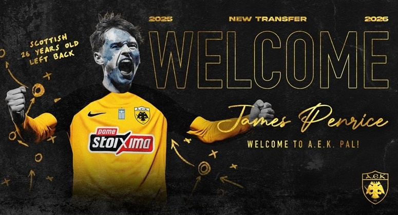 Ο Τζέιμς Πενράις αποτελεί και επίσημα ποδοσφαιριστή της ΑΕΚ, με τους κιτρινόμαυρους να ανακοινώνουν το Σάββατο (5/7) την απόκτηση του Σκωτσέζου μπακ.