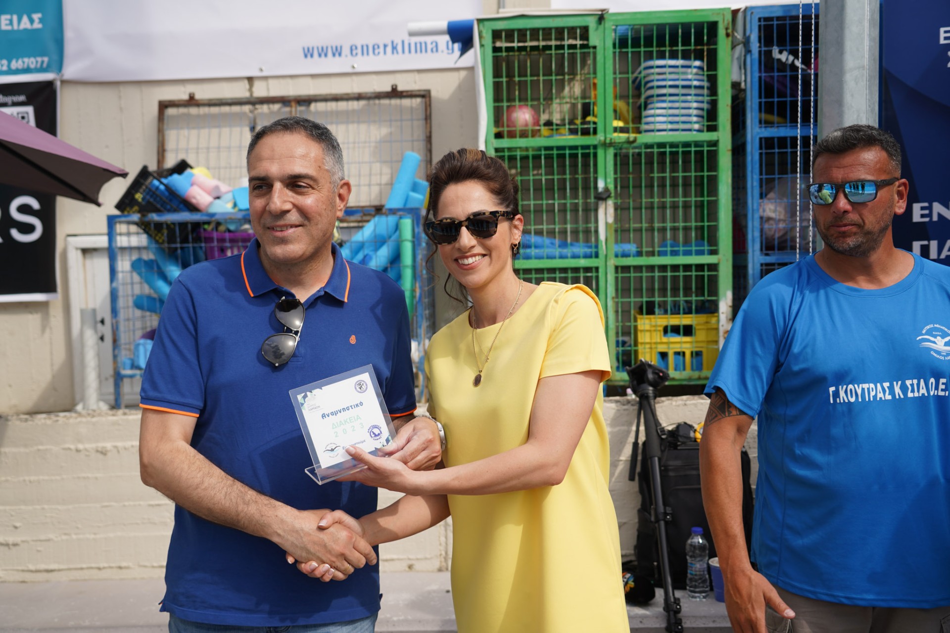 Μετά τη λήξη των πρώτων κολυμβητικών αγώνων έγινε απονομή βραβείων και μεταλλίων στους νικητές από το Δήμαρχο Λαμιέων Θύμιο Καραΐσκο και τους αντιδημάρχους Γιάννη Ζωγράφο και Παναγιώτη Φώσκολο.