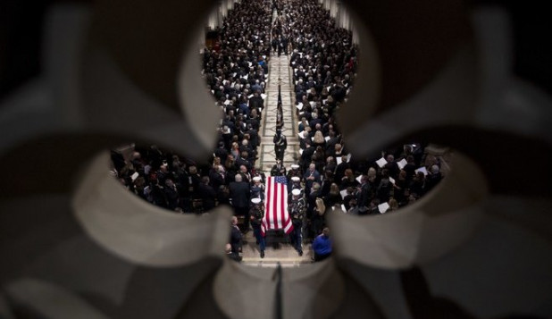 Το φέρετρο με τη σορό του πρώην προέδρου, που απεβίωσε σε ηλικία 94 ετών, έφθασε στον καθεδρικό ναό της Ουάσιγκτον λίγο μετά τις 18.00 ώρα Ελλάδας. Η οικογένεια Μπους, ανάμεσά τους ο Τζορτζ Ου. Μπους, ο 43ος πρόεδρος των ΗΠΑ, συνόδευε τη σορό.