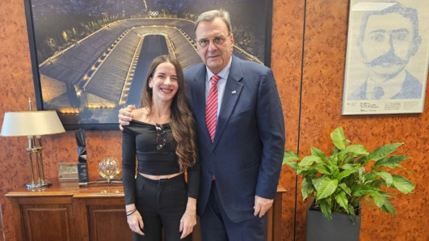 «Θα ενταχθείς στο πρόγραμμα της Ελληνικής Ολυμπιακής Επιτροπής Υιοθετήστε έναν Αθλητή ώστε να έχει στήριξη από κάποιο χορηγό μέχρι τους Ολυμπιακούς Αγώνες. Η συμφωνία θα ξεκινήσει από την αρχή του 2026 και θα συνεχιστεί για 30 μήνες. Πιστεύουμε σε σένα ότι μπορείς να πάρεις την πρόκριση για τους Ολυμπιακούς Αγώνες του Λος Αντζελες και θα σε στηρίξουμε», είπε στην αθλήτρια ο Πρόεδρος της ΕΟΕ.