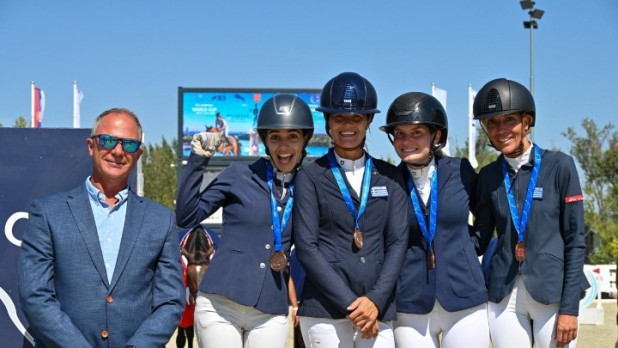 Mε μεγάλο συναγωνισμό ολοκληρώθηκε χθες (7/9) στο Βελιγράδι το Βαλκανικό Πρωτάθλημα Υπερπήδησης Εμποδίων. Στην Κατηγορία Αμαζόνων, η ομάδα μας, που είχε στη σύνθεσή της τις Σάσα Χατζηπρίμου με τον Cendrasine, Βανέσα Δαρμανή με τον Cloud Nine 9, Κατερίνα Ντουμποντέλ με τον Butterfly de Rhodes και Θανούλα Καμπέρου με τον Bel Air de la Vigne, κέρδισε το χάλκινο μετάλλιο συγκεντρώνοντας και στους δύο γύρους 28 βαθμούς, σε σύνολο 7 ομάδων. «Χρυσή» ήταν η ομάδα της Τουρκίας και «ασημένια» η ομάδα της Ρουμανίας. Στο ατομικό αγώνισμα, την καλύτερη θέση από ελληνικής πλευράς πήρε η Βανέσα Δαρμανή με 8 βαθμούς σε σύνολο 49 αμαζόνων.