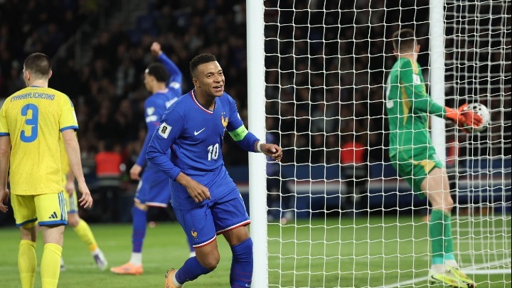Με τα δύο γκολ που πέτυχε στο ματς με την Ουκρανία, ο Μπαπέ έφτασε τα 55 σε 94 συμμετοχές με την εθνική Γαλλίας και απέχει πλέον μόνο δύο τέρματα από τον ρέκορντμαν Ολιβιέ Ζιρού (57).