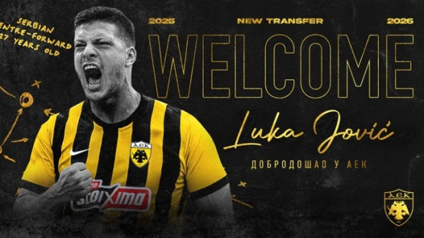 «H ΠΑΕ ΑΕΚ ανακοινώνει την απόκτηση του διεθνούς Σέρβου επιθετικού Λούκα Γιόβιτς, ο οποίος την τελευταία διετία αγωνιζόταν στη Μίλαν.