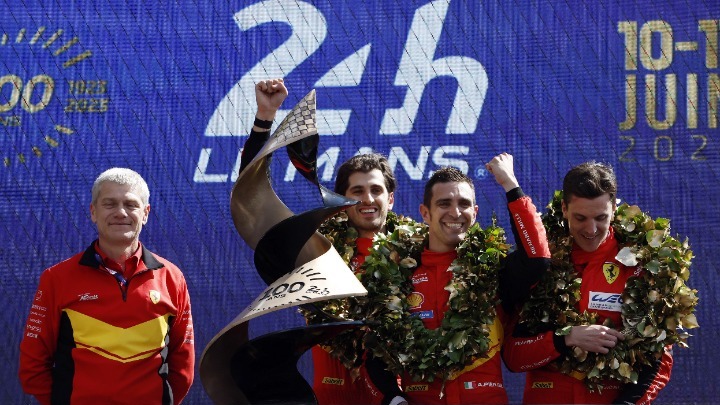 Η Ferrari πανηγύρισε σήμερα (11/6) την πρώτη νίκη της στον αγώνα 24 ωρών του Λε Μαν σε διάστημα 58 ετών. Ο Ιταλός Αλεσάντρο Πιέρ Γκουίντι, ο Βρετανός Τζέιμς Καλάντο και ο Ιταλός Αντόνιο Τζιοβινάτσι ανέβηκαν στο ψηλότερο σκαλί του βάθρου στην κατηγορία Hypercar, στην 100ή «έκδοση» του φημισμένου αγώνα αντοχής, και άφησαν πίσω τους την Toyota, η οποία διεκδικούσε τον έκτο διαδοχικό θρίαμβό της στον αγώνα. Στην επιστροφή της ιταλικής κατασκευάστριας εταιρείας στον αγώνα με το νέο 499P Le Mans Hypercar, το πλήρωμα του αυτοκινήτου με το νούμερο 51 χάρισε στη Ferrari την πρώτη νίκη της στο Λε Μαν μετά το 1965, όταν είχαν επικρατήσει ο Αμερικανός Μάστεν Γκρέγκορι και ο Αυστριακός οδηγός της Φόρμουλα Ένα (σ.σ. και παγκόσμιος πρωταθλητής του 1970) Γιόχεν Ριντ. Αξίζει να σημειωθεί ότι η εφετινή συμμετοχή ήταν η πρώτη για τη Ferrari στον αγώνα 24 ωρών του Λε Μαν εδώ και 50 χρόνια.