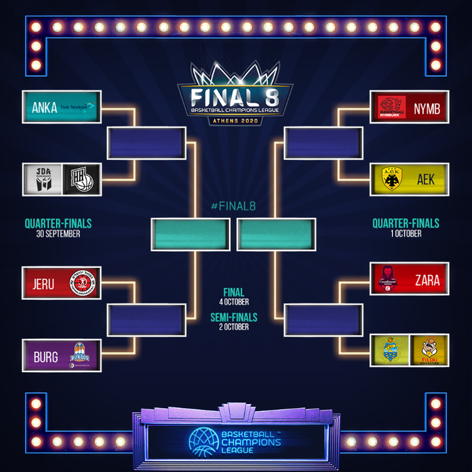 Το... δρόμο που πρέπει να ακολουθήσει, προκειμένου να φτάσει στην κατάκτηση του τροπαίου στο Basketball Champions League για την αγωνιστική περίοδο 2019-20, έμαθε η ΑΕΚ. Και αυτό γιατί πραγματοποιήθηκε σήμερα (10/9) στην έδρα της FIBA, στην Ελβετία, η κλήρωση για το φάιναλ έιτ της διοργάνωσης, το οποιο θα διεξαχθεί στο κλειστό των Ολυμπιακών Εγκαταστάσεων το διάστημα 30 Σεπτεμβρίου-4 Οκτωβρίου. Ο «Δικέφαλος», ο οποίος ήταν ήδη γνωστό ότι θα αντιμετωπίσει τη Νίμπουρκ από την Τσεχία στο πλαίσιο της προημιτελικής φάσης, θα αναμετρηθεί στους «4» με την ισπανική Σαραγόσα ή το νικητή του ζευγαριού ανάμεσα στην ισπανική Τενερίφη και τη βελγική Οστάνδη για τους «16», η οποία θα διεξαχθεί στις 16 Σεπτεμβρίου.