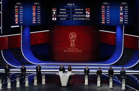 Παρουσία του Προέδρου της Ρωσίας, Βλάντιμιρ Πούτιν, πραγματοποιήθηκε στη Μόσχα, σε αίθουσα του Κρεμλίνου, η κλήρωση του Παγκοσμίου Κυπέλλου 2018. Ο Ρώσος Πρόεδρος άνοιξε τη διαδικασία, συνοδευόμενος από τον πρόεδρο της FIFA, Τζιάνι Ινφαντίνο, και στον χαιρετισμό του υπογράμμισε: «Η χώρα μας περιμένει με ανυπομονησία τη διοργάνωση και έχει την πρόθεση να τη διεξάγει στο υψηλότερο δυνατό επίπεδο. Θα κάνουμε τα πάντα για να τη μετατρέψουμε σε μία μεγάλη αθλητική γιορτή. Καλώ όλους τους φιλάθλους στη Ρωσία. Ραντεβού το 2018!».