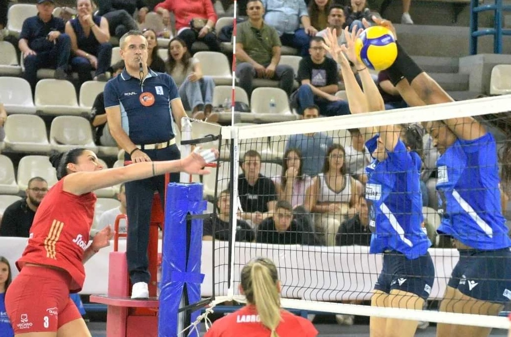 Η ομάδα του Ηλία Αγγέλη, παρατάχθηκε για πρώτη φορά πλήρης, με τις ξένες αθλήτριες να αγωνίζονται κανονικά και εκτός του πρώτου σετ, στα άλλα δύο, όσο περνούσε η ώρα έδειξε πολύ καλό αγωνιστικό πρόσωπο, δυσκόλεψε πολύ τις "ερυθρόλευκες" με αποτέλεσμα και τα δύο να κριθούν στις λεπτομέρειες, με τις φιλοξενούμενες να παίρνουν μεν το "καθαρό τρίποντο" αλλά δύσκολα.