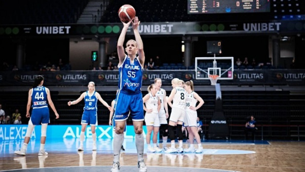 Ιδανικό ξεκίνημα πραγματοποίησε η εθνική γυναικών, προηγούμενη με 8-0, μετά το τζάμπολ στην "Unibet Arena" του Ταλίν. Η Χριστινάκη είχε κάνει το 3-0 με τρίποντο, ακολούθησαν δύο βολές της Σπανού, με τη Χριστινάκη να ευστοχεί σε τζαμπ σουτ, να κερδίζει και το φάουλ και να είναι εύστοχη στη βολή.