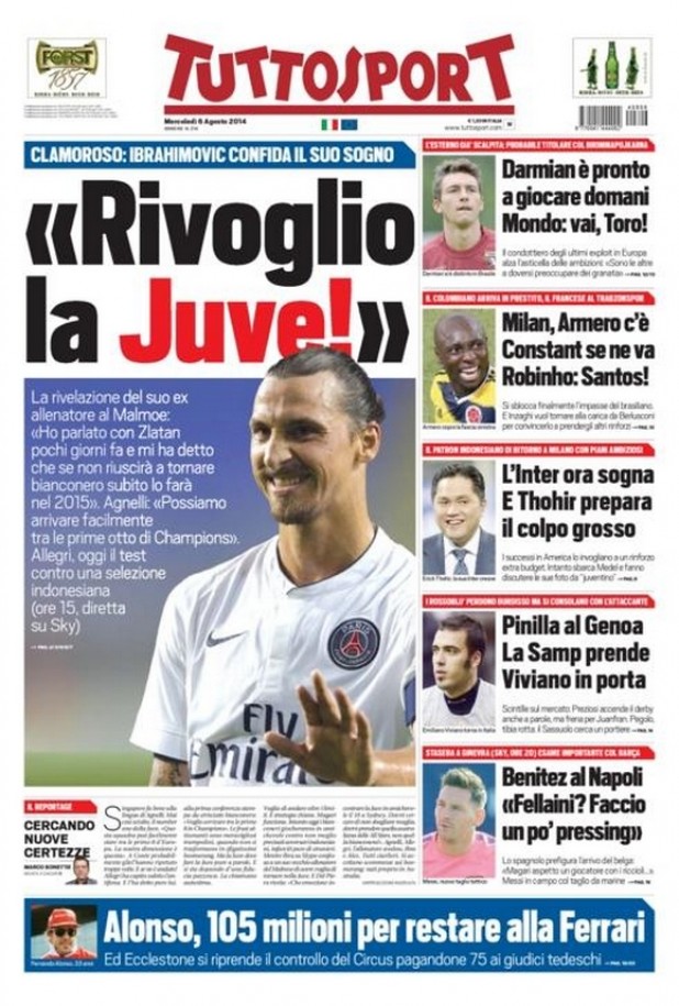 Ο Χάνσεν είχε τον Ιμπραΐμοβιτς υπό την επίβλεψη του στους μικρούς της Μάλμε, γνωρίζει καλά τον Σουηδό επιθετικό της Παρί Σεν Ζερμέν, και σε δηλώσεις του στην ιταλική εφημερίδα Tuttosport τόνισε: "Μίλησα με τον Ίμπρα, καθώς έχουμε πολύ καλή σχέση από τον καιρό που τον προπονούσα στη Μάλμε. Μετά το Σούπερ Καπ Γαλλίας, ξεκινήσαμε να μιλάμε για το μέλλον και μου είπε πως θέλει να επιστρέψει στη Γιουβέντους.
