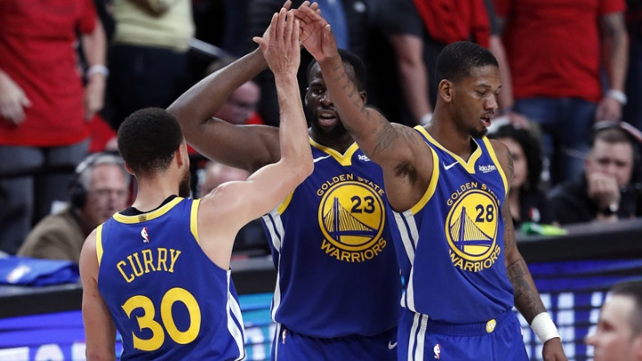 Στεφ Κάρι και Ντρέιμοντ Γκριν έφτασαν σε triple double , οδηγώντας τους Ουόριορς σε νίκη με 119-117 επί των Μπλέιζερς στην παράταση μέσα στο Πόρτλαντ, κάνοντας το 4-0 στους τελικούς της δυτικής περιφέρειας και φτάνοντας σε ένα πέμπτο διαδοχικά τελικό του ΝΒΑ.