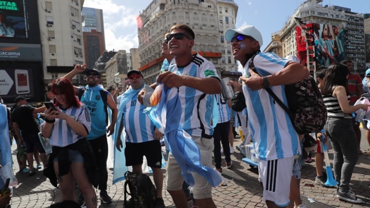Με σημαίες, καπέλα και τις εμβληματικές γαλανόλευκες φανέλες της χώρας, οι Αργεντινοί κατέλαβαν το κέντρο του Μπουένος Άιρες και άλλα σημεία της πρωτεύουσας μέσα σε λίγα λεπτά μετά τον θρίαμβο, ενώ σε όλη τη χώρα ξέσπασαν εορτασμοί.
