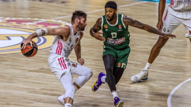 Το απογοητευτικό πρώτο ημίχρονο δεν επέτρεψε στον Παναθηναϊκό, που... μεταμορφώθηκε αμυντικά στην επανάληψη, την υπέρβαση στη Μαδρίτη, όπου υπέστη τη 14η ήττα του σε 21 αγώνες και παρέμεινε στη 16η θέση της Euroleague. Οι «πράσινοι» ηττήθηκαν 76-66 από τη Ρεάλ, για την 22η αγωνιστική, με τους Ισπανούς να επιστρέφουν στα θετικά αποτελέσματα και με ρεκόρ 14-8 να «πατούν» τετράδα.