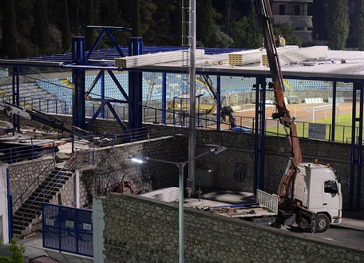 Με αμείωτο ρυθμό, συνεχίζονται οι εργασίες επέκτασης του στεγάστρου στο ΔΑΚ "Αθανάσιος Διάκος" της Λαμίας προκειμένου να ολοκληρωθούν πριν την έναρξη των υποχρεώσεων του ΠΑΣ Λαμία ενόψει του νέου πρωταθλήματος της Super League.