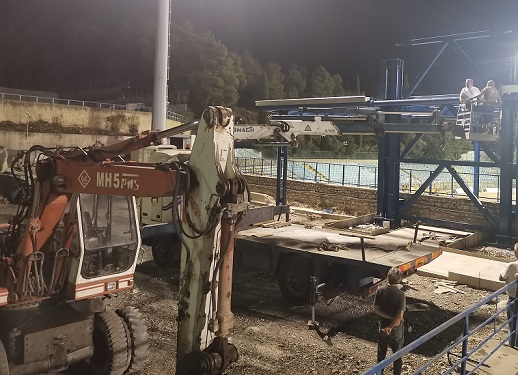 Οι εργασίες συνεχίζονται και κατά τη διάρκεια της νύχτας, με φως από τους προβολείς του σταδίου, ενώ χθες έδωσε το "παρών" και ο Δήμαρχος Λαμιέων, Θύμιος Καραΐσκος.