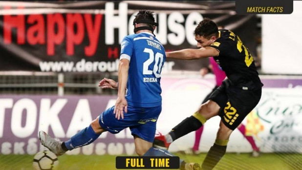 Στο ξεκίνημα της αναμέτρησης λίγο έλειψε οι γηπεδούχοι να αιφνιδιάσουν τους πρωταθλητές, όταν ο Ρίσκι προσπάθησε να εκμεταλλευτεί το λάθος του Τσιγκρίνσκι, αλλά έχασε μεγάλη ευκαιρία να σκοράρει. Η ΑΕΚ στάθηκε τυχερή, καθώς άνοιξε το σκορ στην πρώτη φορά που πλησίασε με αξιώσεις την περιοχή του Παπαδόπουλου. Στο 37΄ ο Κλωναρίδης πέρασε την μπάλα στον Πόνσε (οριακά εκτεθειμένος) και ο Αργεντινός εκτέλεσε άψογα για να γράψει το 0-1.