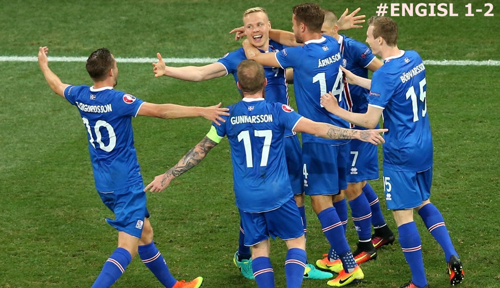 Παρά το γεγονός ότι οι δημοσκοπήσεις ήταν συντριπτικά υπέρ της Αγγλίας, οι Ισλανδοί πήγαν στην «κάλπη» της Νίκαιας στη φάση του «16» του Euro και ψήφισαν «Μένουμε Αγγλία»! Αντίθετα η ομάδα του Λάγκερμπακ πέτυχε τη μεγαλύτερη επιτυχία στην ιστορία της με την πρόκριση στα προημιτελικά. Οι παίκτες του Χότζσον αν και προηγήθηκαν μόλις στο 4' με πέναλτι του Ρούνι, δεν κατάφεραν να πάρουν την πρόκριση κι έμειναν εκτός Euro. Στο 6' ο Ρ. Σίγκουρντσον και στο 18' ο Σίγκτορσον πέτυχαν τα ιστορικά γκολ για τους Ισλανδούς.