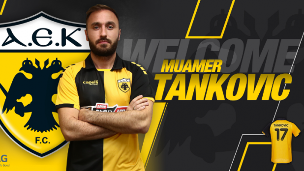 «Η ΠΑΕ ΑΕΚ ανακοινώνει την απόκτηση του Μουαμέρ Τάνκοβιτς από τη Χάμαρμπι. Ο Σουηδός διεθνής μεσοεπιθετικός υπέγραψε τετραετές συμβόλαιο με την ομάδα μας, μέχρι το καλοκαίρι του 2024 και θα αγωνίζεται με τον αριθμό 17.