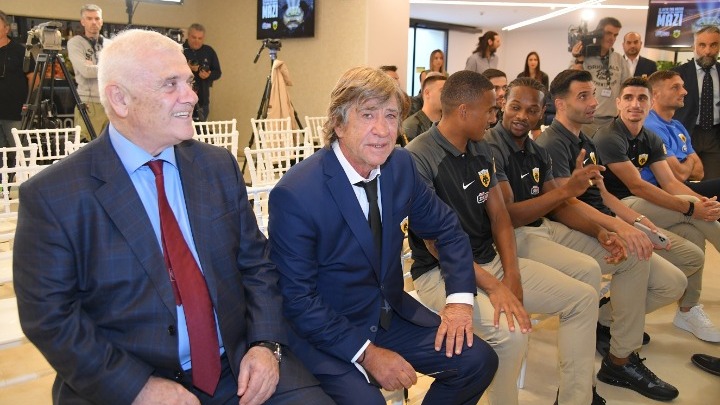 H εκδήλωση για τη συνέχιση της χορηγικής συνεργασίας των δύο πλευρών, πραγματοποιήθηκε στην OPAP Arena, παρουσία της Διοίκησης του ΟΠΑΠ και της ΠΑΕ ΑΕΚ, του προπονητικού επιτελείου και των παικτών της ομάδας.