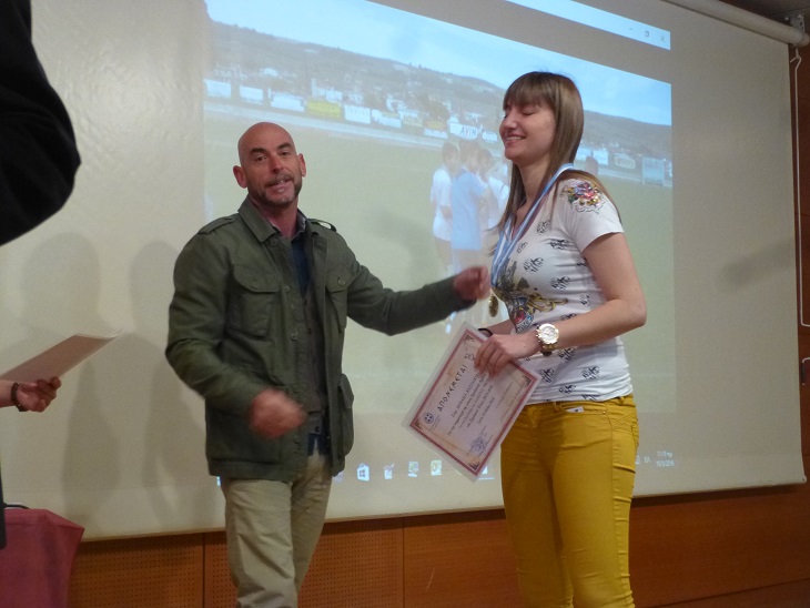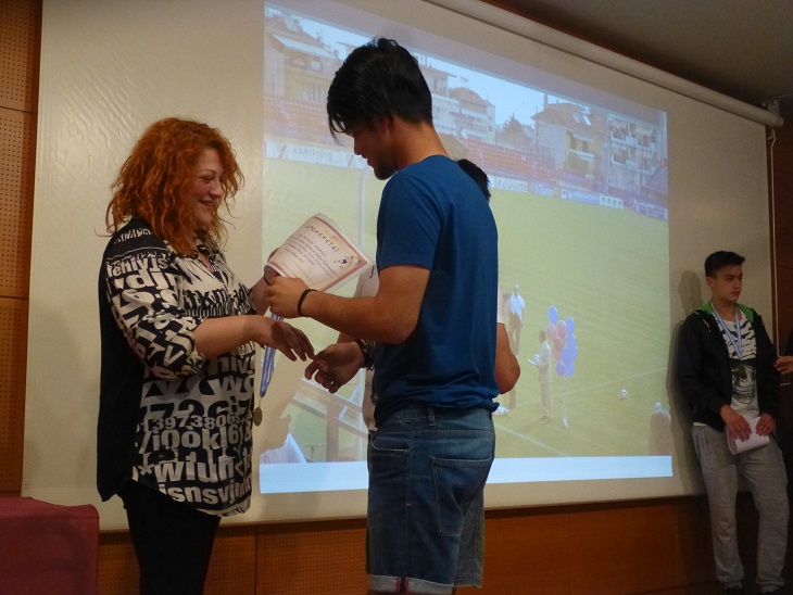 Τα βραβεία και τα μετάλλια στην ομάδα ποδοσφαίρου, απένειμε η Αντιδήμαρχος Λαμιέων, Βίβιαν Αργύρη.