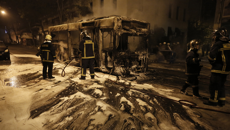 Αγνωστοι έκαψαν λεωφορείο και τρόλεϊ στην Πατησίων