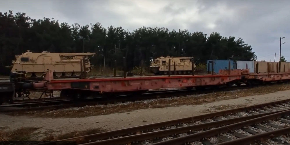 Πρόκειται για φορτίο με άρματα μάχης, τεθωρακισμένα και κοντέινερ που ξεφορτώθηκαν πρόσφατα στο λιμάνι του Εβρου από το μεταγωγικό πλοίο Endurance των ΗΠΑ για λογαριασμό του αμερικανικού στρατού.