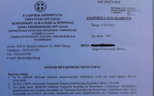 Μία ημέρα πριν από τους προγραμματισμένους ελέγχους που έχει σχεδιάσει το Σώμα Επιθεωρητών Εργασίας να πραγματοποιήσει στην περιφέρεια για να εντοπίσει ανασφάλιστα απασχολούμενους, η Διαύγεια... "κάρφωσε" τους ελεγκτές, γνωστοποιώντας που θα μετακινηθούν την επόμενη ημέρα εκτός έδρας!
