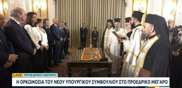 Ολοκληρώθηκε το μεσημέρι της Τρίτης (27/06) η ορκωμοσία των μελών της νέας κυβέρνησης στο Προεδρικό Μέγαρο, ενώπιον της Προέδρου της Δημοκρατίας Κατερίνας Σακελλαροπούλου, και παρουσία του πρωθυπουργού Κυριάκου Μητσοτάκη.