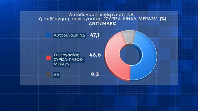 Όσον αφορά στις προτιμήσεις των πολιτών για αυτοδύναμη κυβέρνηση, ή κυβέρνηση συνεργασίας, τα ποσοστά είναι σχεδόν μοιρασμένα και πολύ κοντά μεταξύ τους.