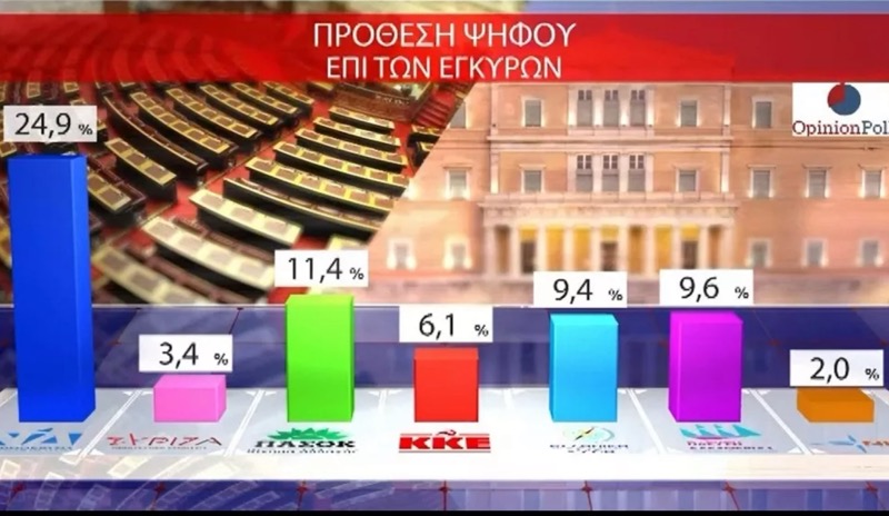 Δημοσκόπηση Opinion Poll: Άνοδος ΝΔ στο 30,5% μετά τη ΔΕΘ * Προβάδισμα 16,5 από το ΠΑΣΟΚ