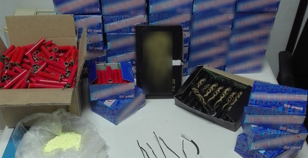 Σύμφωνα με τη Αστυνομία, σε έρευνα που διεξήχθη στο σπίτι του 19χρονου βρέθηκαν 2.110 κροτίδες, 30 γραμμάτια πυρίτιδας, τρεις πυροκροτητές, ποσότητα θειαφιού, συνολικού βάρους 90 γραμμαρίων, και μια βραδύκαυστη θρυαλλίδα.