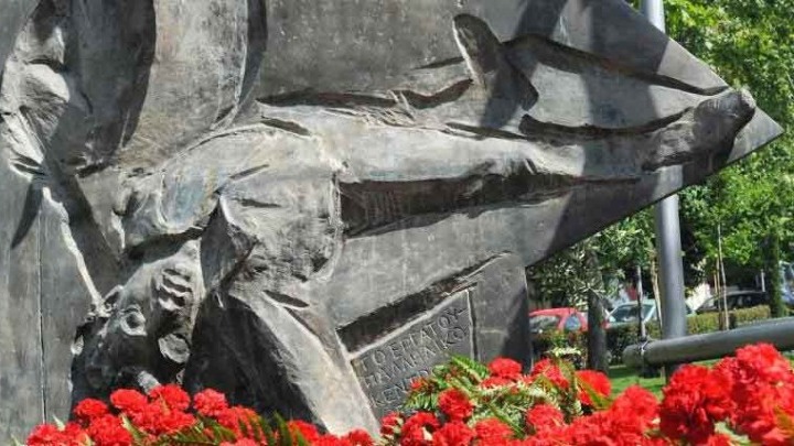 Στο Μνημείο του Εργάτη, έξω από το Εργατοϋπαλληλικό Κέντρο Θεσσαλονίκης, συγκεντρώθηκαν εκπρόσωποι των συνδικάτων της δύναμης του ΕΚΘ και της ΕΔΟΘ/ΝΤ ΑΔΕΔΥ, πολιτικών κομμάτων και αντιστασιακών οργανώσεων.
