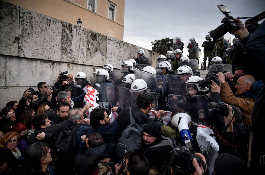 Ένταση σημειώθηκε κατά τη διάρκεια της πορείας των εκπαιδευτικών, με ορισμένους από τους διαμαρτυρόμενους να προσπαθούν να μπουν στη Βουλή.