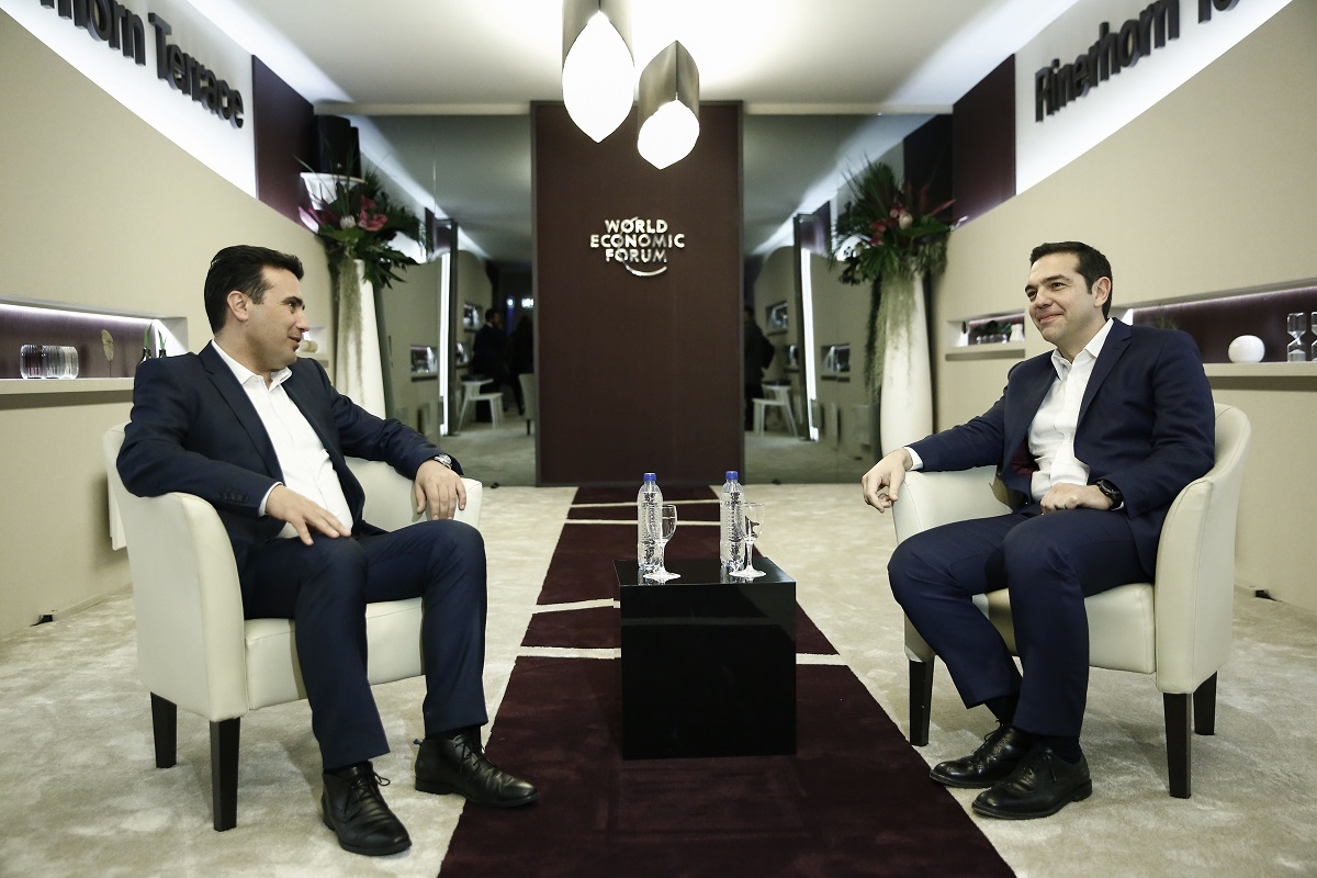 Σύμφωνα με πληροφορίες, κατά την συνάντηση περίπου δύο ωρών με τον Ζ. Ζάεφ (δυόμιση μαζί με τους ΥΠΕΞ των δύο χωρών) ο Αλέξης Τσίπρας ξεκαθάρισε ότι λύση μπορεί να υπάρξει μόνο εφόσον πρόκειται για σύνθετη ονομασία που θα ισχύει έναντι όλων. Το «έναντι όλων» προφανώς περιλαμβάνει και την ίδια τη γείτονα. Κατά πληροφορίες, ο κ. Ζάεφ ανέφερε ότι στο παρελθόν ελληνικές κυβερνήσεις είχαν δεχθεί την ονομασία «Μακεδονία-Σκόπια», όπως και ότι είχαν δεχθεί ελληνικές κυβερνήσεις στο παρελθόν και διπλή χρήση, δηλαδή άλλη στο εσωτερικό και άλλη στο εξωτερικό. Κατά τις ίδιες πληροφορίες, ο κ. Ζάεφ κατανόησε ότι το «Μακεδονία-Σκόπια» δεν μπορεί να αποτελεί λύση και συμφώνησε να προχωρήσει η συζήτηση σε μια νέα βάση.