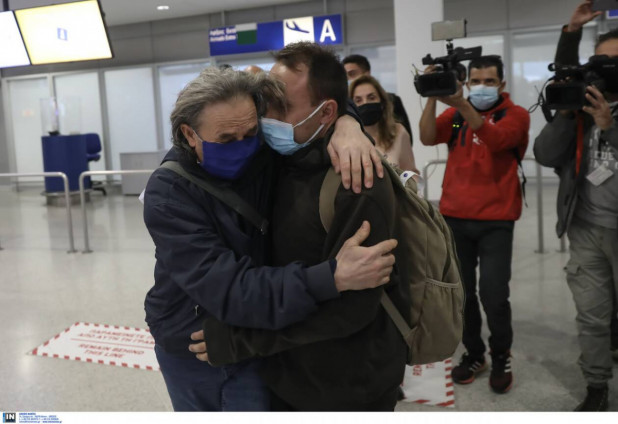 Εμφανώς εξαντλημένοι συναντήθηκαν με τα οικεία τους πρόσωπα στο αεροδρόμιο «Ελευθέριος Βενιζέλος».