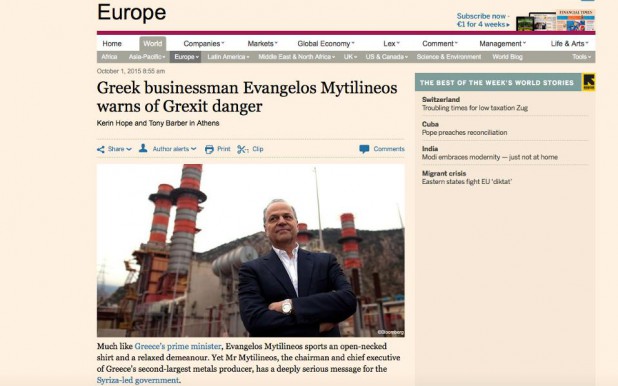 Ευ. Μυτιληναίος στους FT: Το Grexit είναι ακόμη πραγματικός κίνδυνος