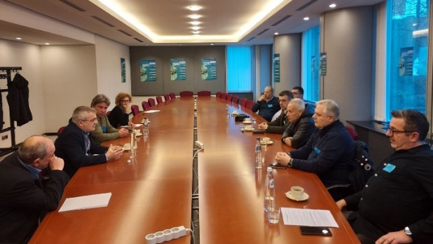 Στο περιθώριο της Ημερίδας πραγματοποιήθηκε επίσης συνάντηση της Ευρωκοινοβουλευτικής Ομάδας του ΚΚΕ με την αντιπροσωπεία της ΟΜΕ - ΕΥΔΑΠ όπου εξετάστηκαν οι εξελίξεις μετά την ψήφιση του νόμου από την κυβέρνηση της ΝΔ και η πείρα από τις κινητοποιήσεις που οργανώθηκαν.