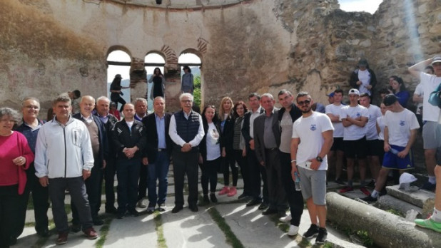 Τους μαθητές υποδέχθηκαν ο υπουργός Παιδείας, οι διευθυντές των σχολικών μονάδων και οι καθηγητές τους ενώ στην συνέχεια όλοι μαζί έβγαλαν μια αναμνηστική φωτογραφία με φόντο το ιστορικό μνημείο. Ο διευθυντής του Γυμνασίου Λαιμού Πρεσπών Κώστας Παρασκευόπουλος μίλησε στους μαθητές για την αρχαιολογική αξία του μνημείου και έδωσε ιστορικές πληροφορίες για την ανασκαφή του από τον αείμνηστο καθηγητή Νίκο Μουτσόπουλο ο οποίος το 1969 ανακάλυψε, τον τάφο με το λείψανο του Αγίου Αχιλλείου και τέσσερις σαρκοφάγους που μετά από διεξοδικές επιστημονικές εξετάσεις των οστών διαπιστώθηκε ότι ανήκαν στον βασιλιά Σαμουήλ και σε στενούς συγγενείς του.
