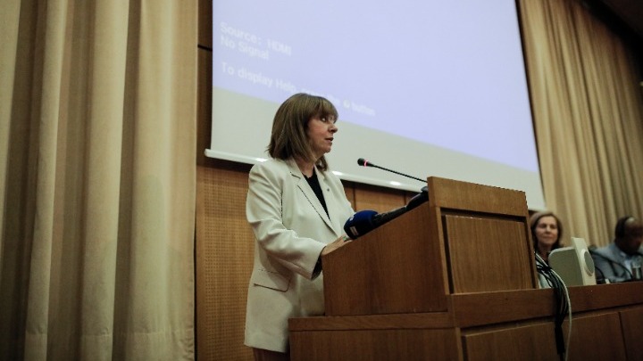 Κατά το χαιρετισμό της, η κ. Σακελλαροπουλου τόνισε μεταξύ άλλων: