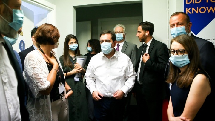 Ένα από τα εκπαιδευτικά κέντρα ένταξης προσφύγων του προγράμματος Helios που λειτουργεί ο Διεθνής Οργανισμός Μετανάστευσης, στο κέντρο της Αθήνας, επισκέφθηκε σήμερα ο υπουργός Μετανάστευσης και Ασύλου, Νότης Μηταράκης, συνοδευόμενος από τον επικεφαλής του ελληνικού γραφείου του ΔΟΜ, Τζιανλούκα Ρόκο.