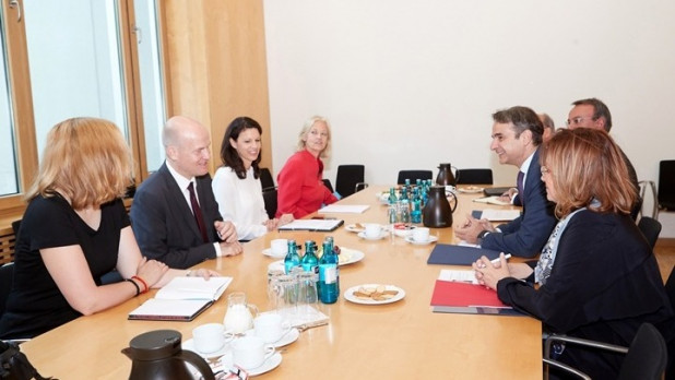 «Οι τελευταίες δηλώσεις της κυβέρνησης, δείχνουν μια κυβέρνηση που έχει χάσει κάθε επαφή με την πολιτική, κοινωνική και οικονομική πραγματικότητα. Το να βλέπει κανείς φαντάσματα διαπλοκής, είναι συνήθως ιστορικά το τελευταίο καταφύγιο κυβερνήσεων που καταρρέουν. Το έχουμε ξαναδεί», δήλωσε ο κ. Μητσοτάκης και τόνισε ότι η Νέα Δημοκρατία είναι σήμερα η μόνη πολιτική δύναμη με αξιόπιστο σχέδιο, «το οποίο μπορεί να πείσει όχι μονο τους εταίρους μας, οι οποίοι, δυστυχώς για τη χώρα, θα εξακολουθήσουν να την εποπτεύουν για τα επόμενα χρόνια, αλλά κυρίως την επενδυτική κοινότητα, ότι η Ελλάδα έχει μέλλον και προοπτική και ότι αξίζει να επενδύσει κανείς τα κεφάλαιά του». Αυτό το σχέδιο, «για το πώς η χώρα θα επανέλθει σε τέτοιους ρυθμούς ανάπτυξης ώστε να μπορέσει να επανέλθει η ευημερία στους Έλληνες πολίτες και η σταθερή δυνατότητα χρηματοδότησης της ελληνικής οικονομίας», παρουσίασε νωρίτερα σήμερα ο αρχηγός της Αξιωματικής Αντιπολίτευσης στον Αντικαγκελάριο και υπουργό Οικονομικών της Γερμανίας Όλαφ Σολτς.