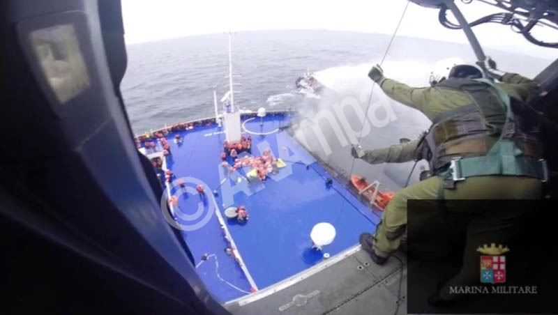 Υπό αντίξοες καιρικές συνθήκες, λόγω ενίσχυσης των ανέμων και με χαμηλές θερμοκρασίες, συνεχίζεται από εναέρια μέσα η επιχείρηση μετεπιβίβασης των επιβατών από το πλοίο «Norman Atlantic», στο οποίο εκδηλώθηκε πυρκαγιά χθες τα ξημερώματα υπό αδιευκρίνιστη αιτία, ενώ έπλεε στα στενά του Οτράντο. Στην επιχείρηση συμμετέχουν τέσσερα ελικόπτερα Super Puma, ένα ελληνικό και τρία ιταλικά.