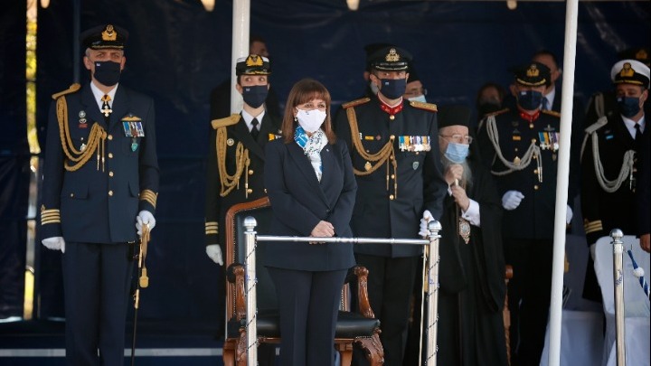 «Το έπος του ' 40 μας θυμίζει όλα αυτά που μπορούμε να πετύχουμε όταν είμαστε ενωμένοι», δήλωσε η Πρόεδρος της Δημοκρατίας, Κατερίνα Σακελλαροπούλου, αμέσως μετά την ολοκλήρωση της στρατιωτικής παρέλασης στη Θεσσαλονίκη, για την εθνική επέτειο του «ΟΧΙ» και υπογράμμισε πως «οι Ενοπλες Δυνάμεις εγγυώνται την ασφάλεια μας και προασπίζονται την πατρίδα απέναντι σε κάθε απειλή».