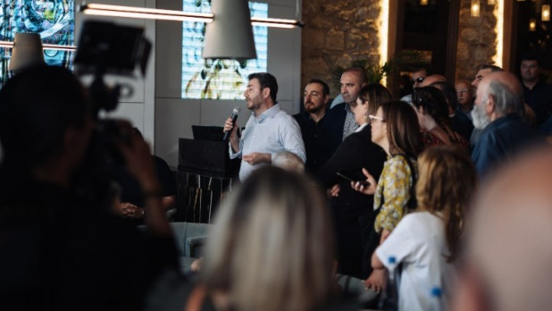 ενώ επανέλαβε ότι «το πολιτικό χρώμα που ταιριάζει στην Κρήτη είναι το πράσινο» και πως «θα δώσουμε αγώνα από τη μια μέχρι την άλλη άκρη του νησιού για να ξαναγίνει η Κρήτη πράσινη».