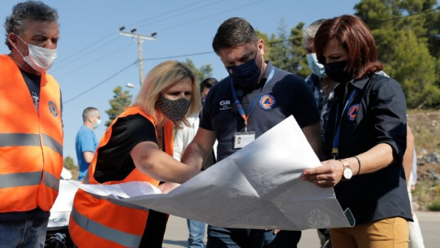 Ο κ. Χαρδαλιάς κατά την επίσκεψή του σε Υμηττό και Ιπποκράτειο Πολιτεία συνοδευόταν από τον γενικό γραμματέα Πολιτικής Προστασίας, Β. Παπαγεωργίου καθώς και από στελέχη των τεχνικών υπηρεσιών της ΓΓΠΠ.