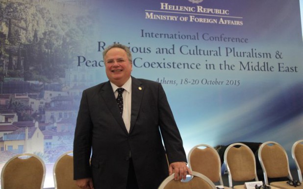 Τον σημαντικό ρόλο της Ελλάδας, μίας χώρας που είναι γέφυρα τριών ηπείρων, ως ενός έντιμου μεσολαβητή στην επιτακτική ανάγκη για την ειρηνική συνύπαρξη διαφορετικών δογμάτων, αντιλήψεων, πεποιθήσεων και κυρίως για την υπεράσπιση πρωτίστως της ανθρώπινης ζωής, τόνισε ο υπουργός Εξωτερικών Νίκος Κοτζιάς στην ομιλία του στη Διεθνή Διάσκεψη με θέμα «Θρησκευτικός και πολιτισμικός πλουραλισμός και ειρηνική συνύπαρξη στη Μέση Ανατολή».