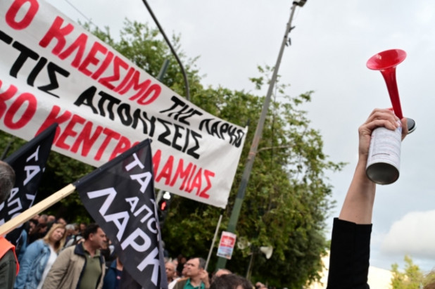 Με πανό και συνθήματα όπως «Κάτω τα χέρια από τη ΛΑΡΚΟ» και «Όχι στις απολύσεις» εξέφρασαν για μία ακόμη φορά την απόφασή τους να συνεχίσουν τον αγώνα για να ξανακαπνίσει η τσιμινιέρα της ΛΑΡΚΟ, ενάντια στην απόφαση της κυβέρνησης να τους πετάξει στο δρόμο και το ταμείο ανεργίας.
