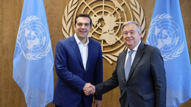 Συγχαρητήρια στην Ελλάδα για την αντιμετώπιση της προσφυγικής κρίσης έδωσε ο ΓΓ του ΟΗΕ Αντόνιο Γκουτέρες στη συνάντηση του με τον Αλέξη Τσίπρας, σύμφωνα με κυβερνητικές πηγές, ενώ απένειμε τα εύσημα στον Έλληνα πρωθυπουργό για την «ιστορική συμφωνία» με την ΠΓΔΜ, στην οποία εξάλλου αναφέρθηκε και στην ομιλία του.
