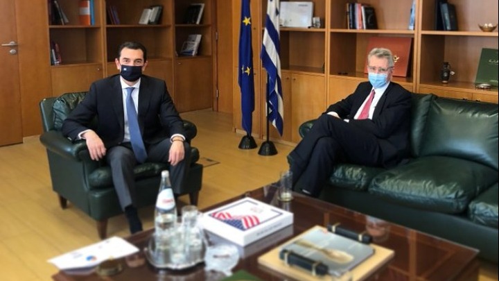 Οι εισαγωγές αμερικανικού υγροποιημένου φυσικού αερίου στην Ελλάδα και οι διεθνείς ενεργειακές διασυνδέσεις που είναι υπό κατασκευή, συζητήθηκαν μεταξύ άλλων στην συνάντηση που είχαν το πρωί της Πέμπτης, ο υπουργός Περιβάλλοντος και Ενέργειας, Κώστας Σκρέκας, με τον αμερικανό πρέσβη Τζ. Πάιατ, στο επίκεντρο της οποίας βρέθηκε η περαιτέρω ενίσχυση της στρατηγικής συνεργασίας Ελλάδας-ΗΠΑ στον ενεργειακό τομέα.