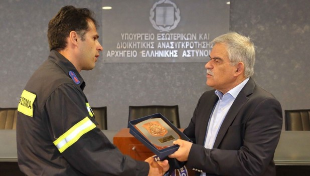 O Ν.Τόσκας τίμησε τους πυροσβέστες που διέσωσαν πολίτες και ένα βρέφος στον Πειραιά